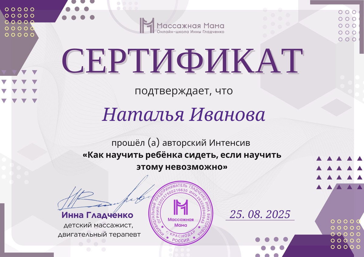Сертификат после прохождения интенсива